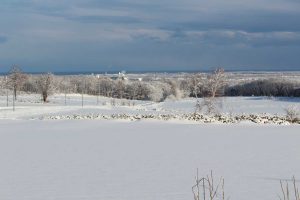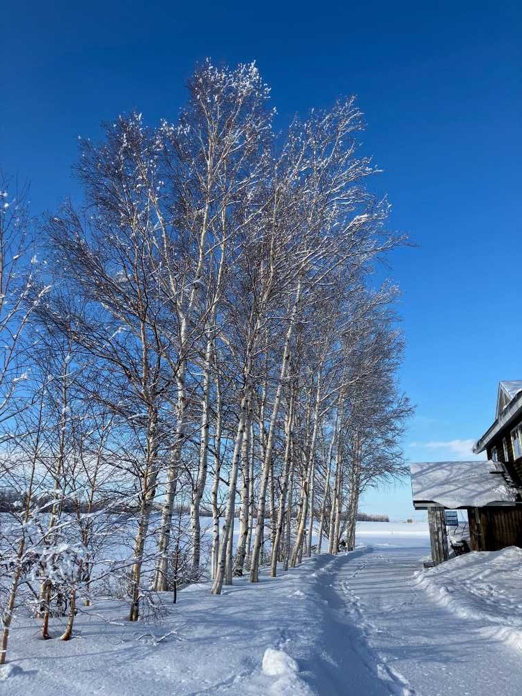ここ数日の暖気で8割がた雪が解けましたが昨晩は暖かい湿った雪が途中から冷えてきて粉雪となり15cmぐらい積もりました。そのためどの樹々も樹氷のようになってどこをみても絶景。風景を楽しみつつ日々の仕事の除雪です。