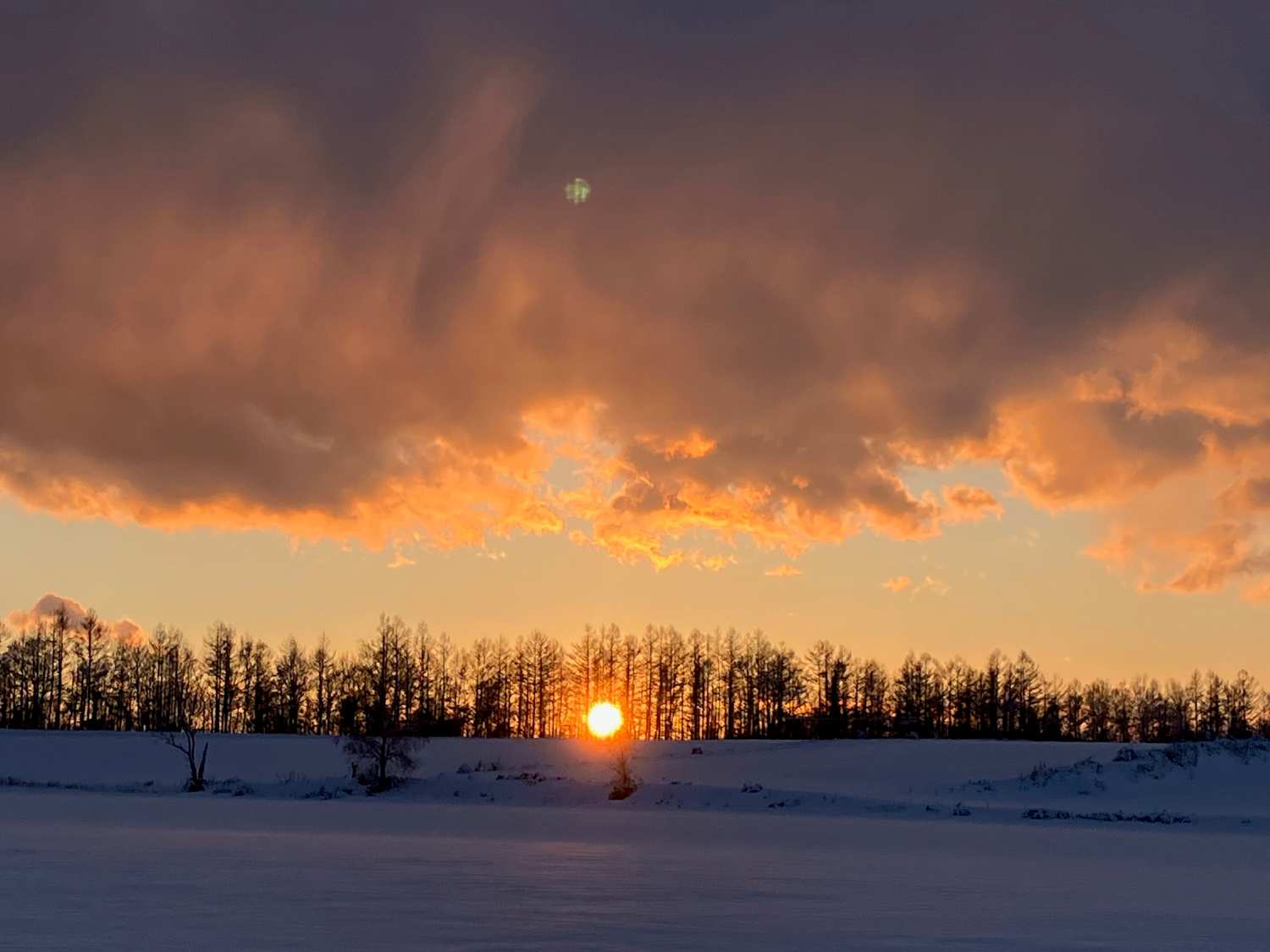 2025年大晦日の太陽は15時40分に藻琴山の方角に沈んでいきました。