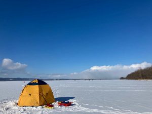 今シーズンも始まりました、氷上の釣り。まずはワカサギ狙いで昨日解禁となった女満別湖へ(網走湖)氷点下16℃でも風が無く日差しがあるので人力で氷に穴を開けていると暑いぐらいです。