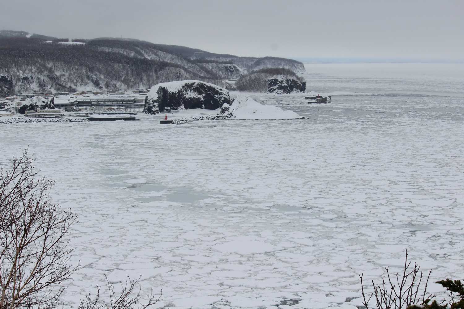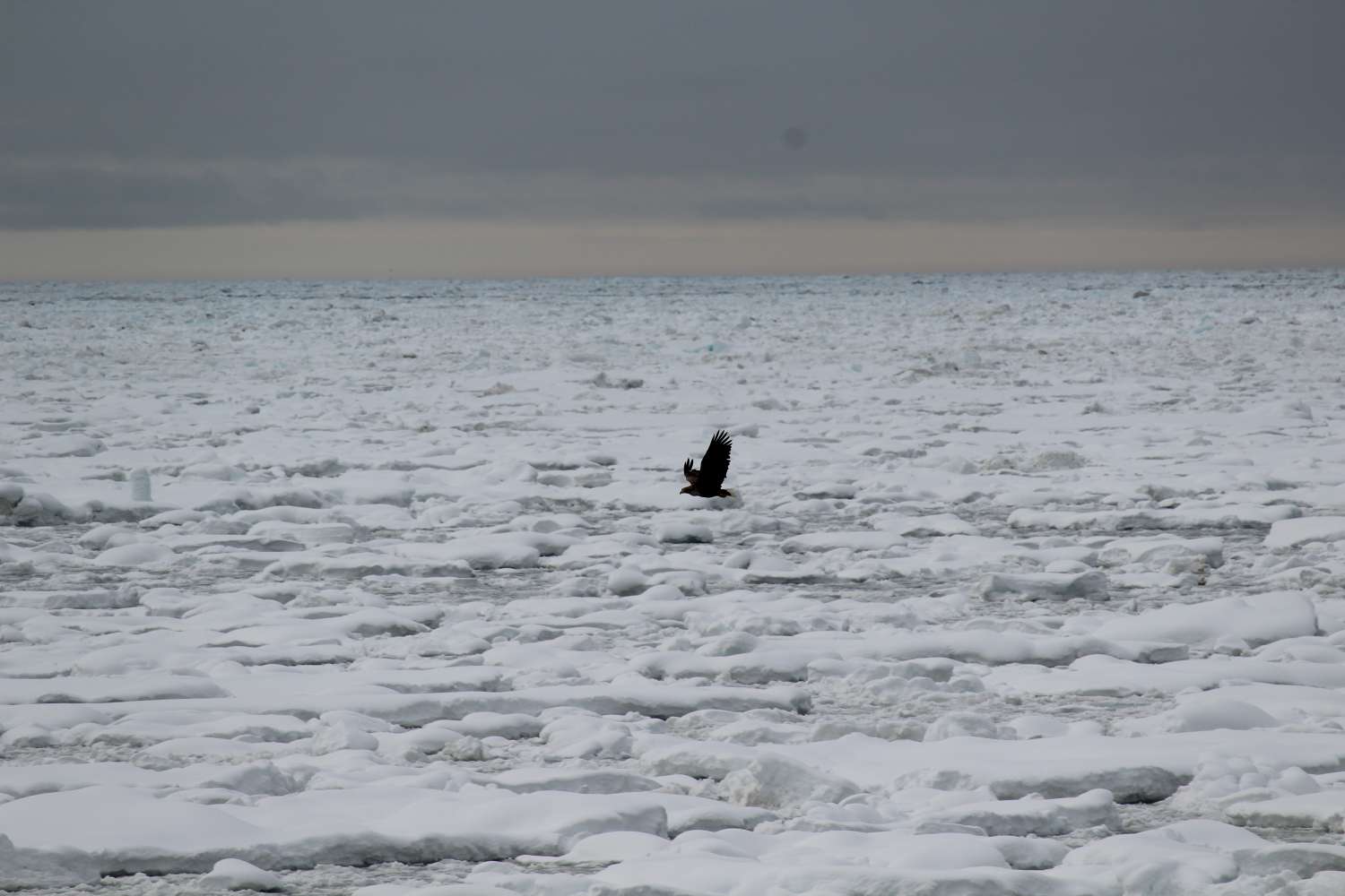 宿業もひとまず一段落。窓から流氷がかなり見えたのでウトロまでカメラを持って行ってきました。今日は普通の観光客っぽく普段着でスノーシューも持ってこなかったのでまずはプユニ岬から。相変わらずの曇りと小雨だったけど一面にゆる~く流氷が広がっていました。