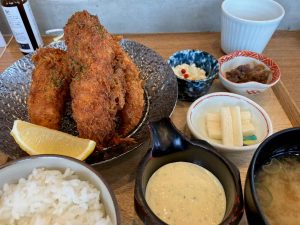 昼は「レオナルド」でサケフライ定食。完全なガッツリ系で夕食分のカロリーもとりました。この店の店員さんたちは皆若い料理のプロなので活気とスピードがあります。素晴らしい!昼の部は11時半~14時までと短めですが、しっかり昼飯を、という方は是非行ってみてください。