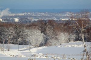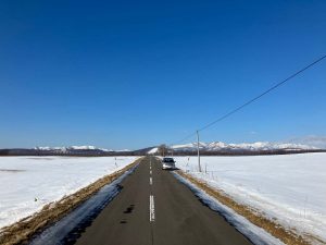 清里峠を越えると太平洋側の風景。同じ雪原でもオホーツクの畑作地帯とは違う広大さも北海道の風景。