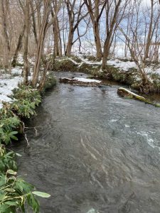 まずは第一投・・第2投・・第3投・・いつもなら1投目から釣れるのに全く反応がありません。今シーズンはここにはトラウトたちはいない様子。何年も続けてこの時期は爆釣だったのにどうしちゃったのだろう・・自然の摂理で魚が減ったとかたまたま今年はいないとかならまだいいけれど・・30分ほどあちこち投げてみて全く反応が無いのでさっさと退散。