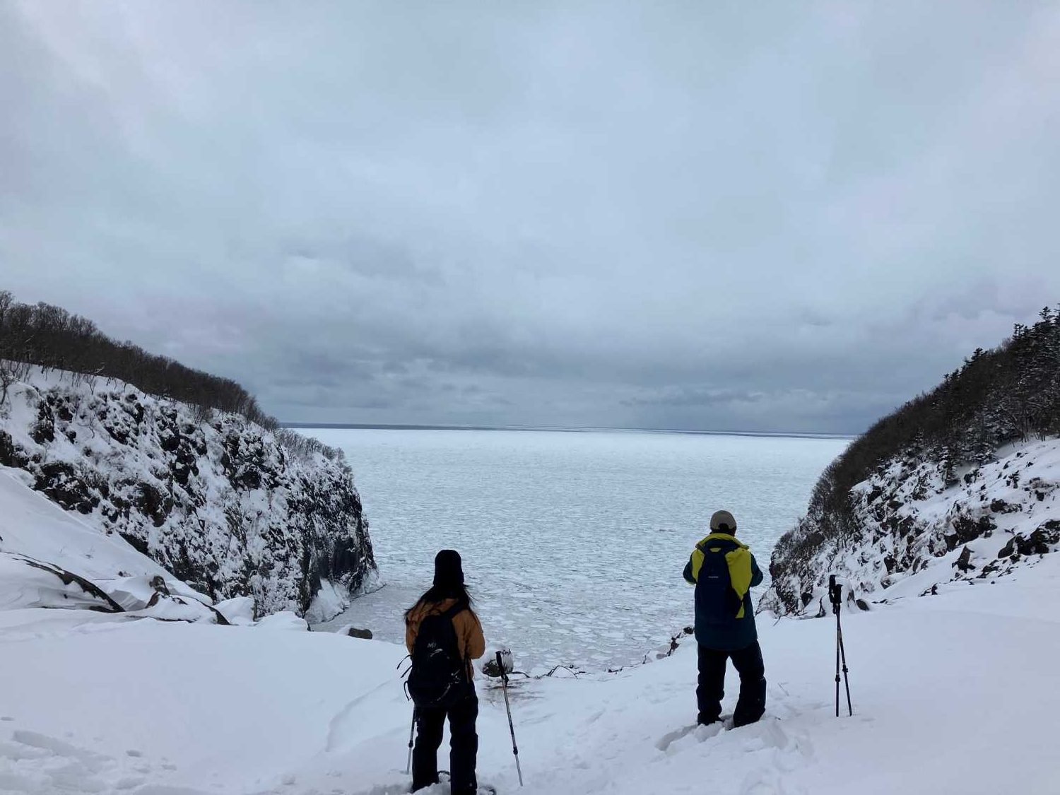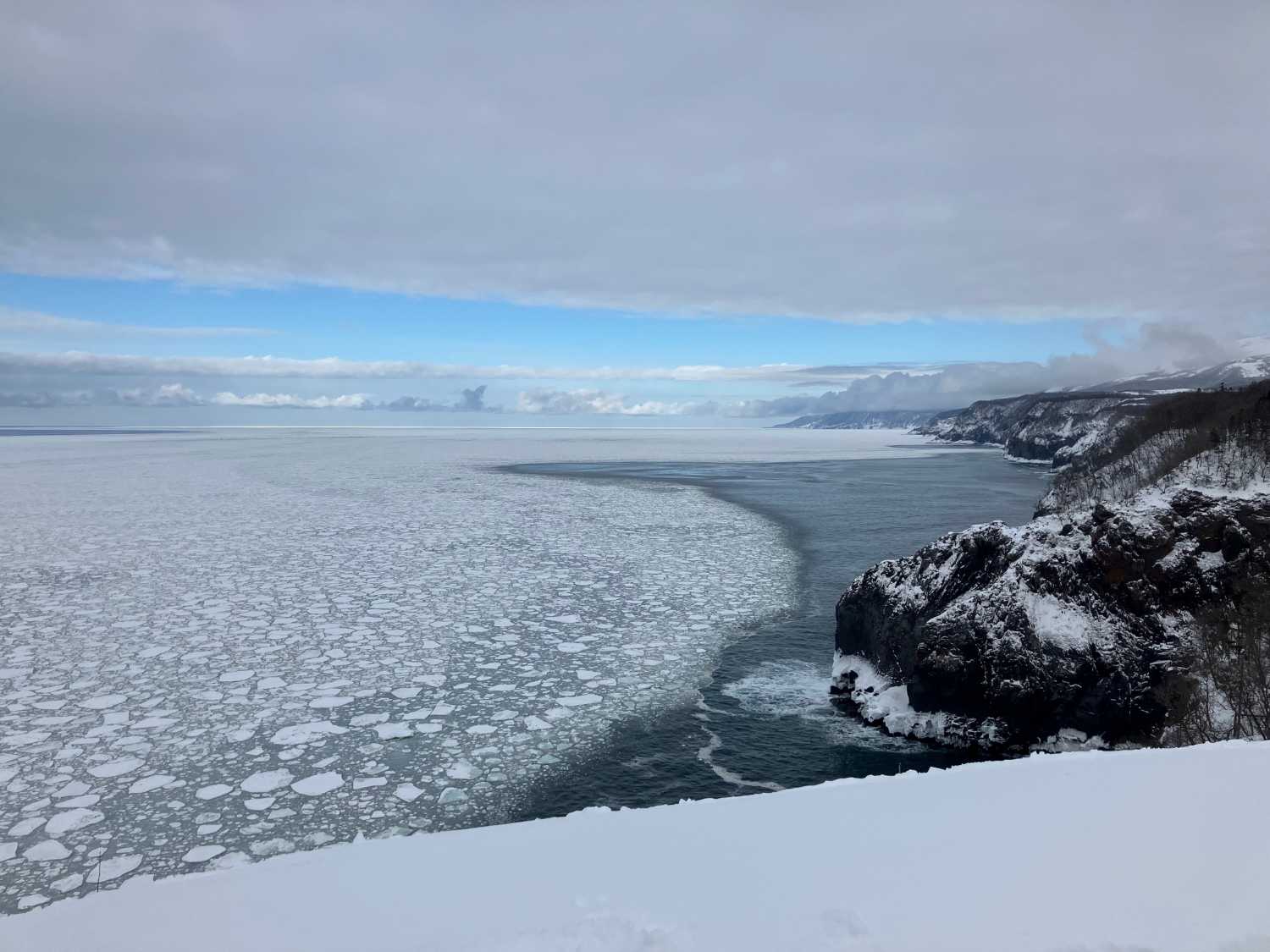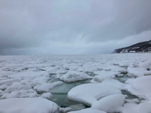 昨日の男の涙の湾には流氷がしっかり。今日は湾の中には無く、日によってかなり違います。