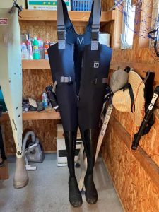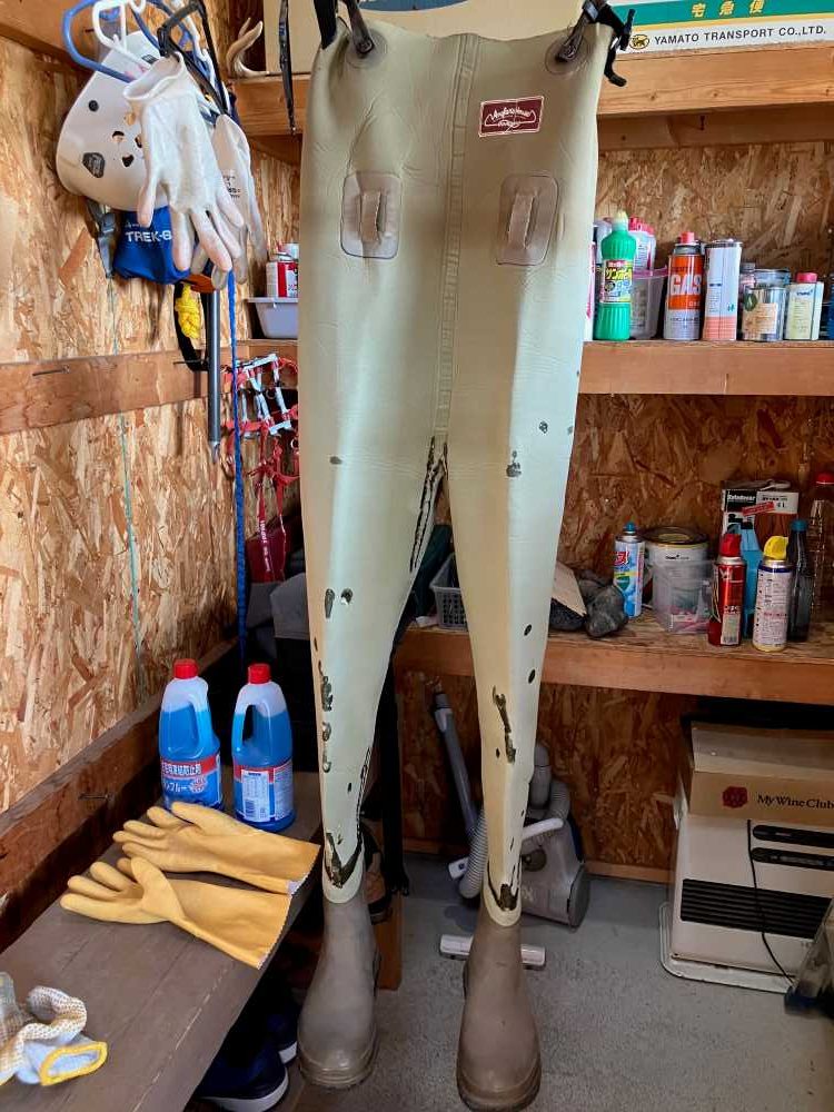 Y氏から5年ぐらい前にもらったアングラーズハウスのウェダーも素材の劣化でついにお役御免。この前も同じ型のウェダーを25年つかっていてそのあとこれで5年。自分の体型と使い方に合うものを何年もかけて探していたけどどれもイマイチでこのウェダーが一番使いやすかったため直しに直して使っていました。
