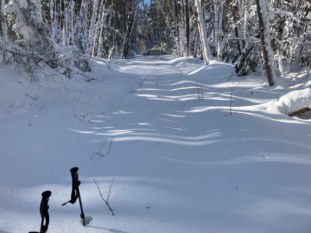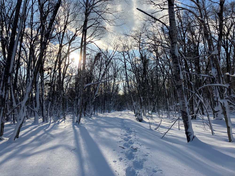 帰路は自分の足跡をなぞるように歩いたのでラッセルもなく往路の半分の体力で戻れました。今シーズンは12月は寒く、積雪が早く来たので1月~2月はもしかしたら暖かいのか・??いつもと違うパターンの冬なので先が読めない感じです。