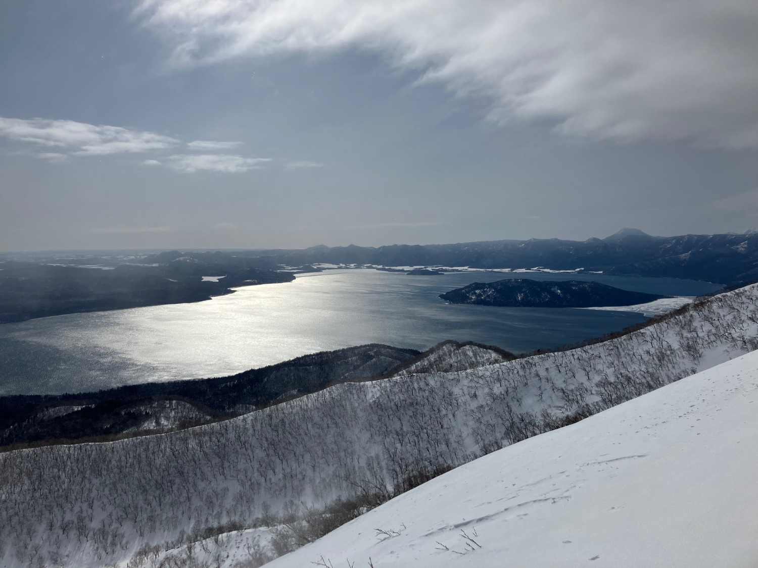 今日は藻琴山へ。氷点下10℃、強風、地吹雪でだれ~もいませんが登山家?Nさんと耐寒訓練のつもりで登ってきました。屈斜路湖はまだ一部しか凍っていません。これはこのまま春になるのかな・・そうすると釣りは早くからできるけど、経験上あまり釣果は良くないかも・・