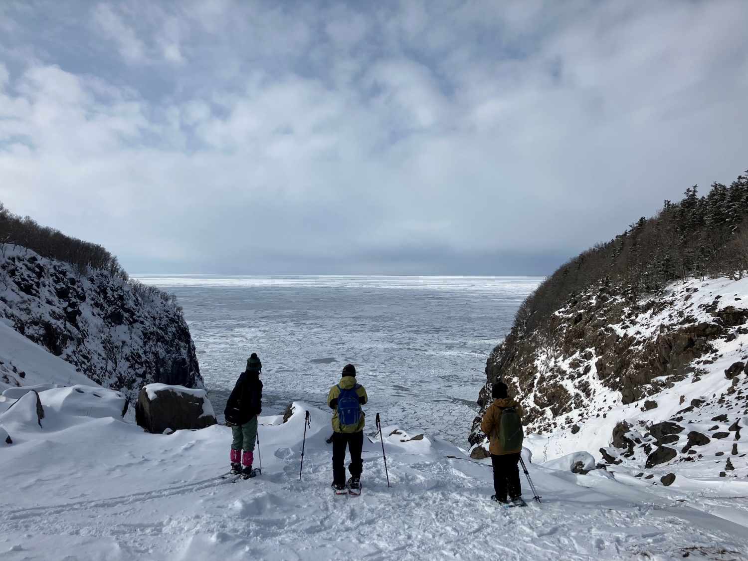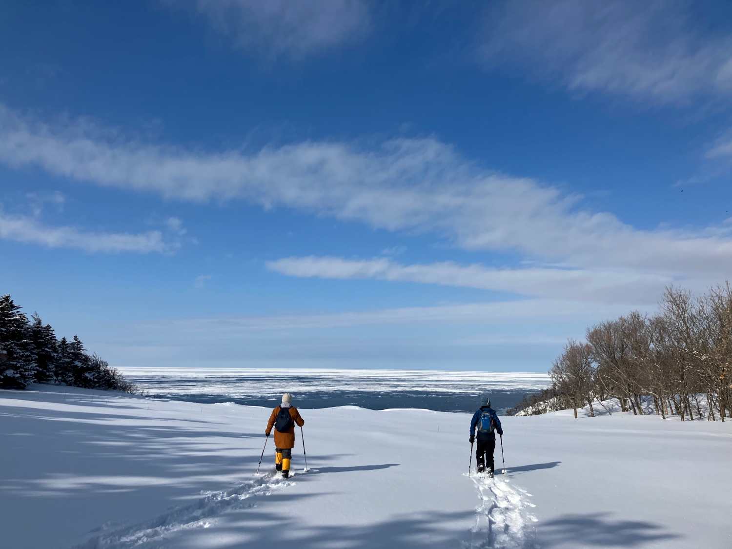 知床の奥地を満喫。流氷に向かって自分たちだけの足跡。