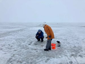 こちらも凍った海を渡っている途中、解けた場所に少し戸惑うエゾシカたち。野付半島は予想外の人気で人も多かったですが、ここらしい光景が見られました。知床とはかなり違う場所なので車のある方は続けて行ってみると楽しめると思います。